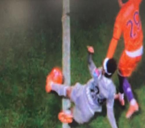 紫百合本轮遭遇了对手的读秒绝杀,而这粒绝杀进球,来自于一次有出界嫌疑的传中。
