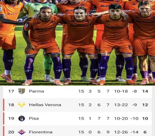 目前佛罗伦萨6平9负排名意甲垫底,是本赛季意甲唯一未尝胜绩的球队。